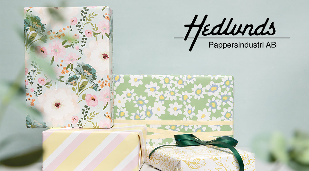 Hedlunds Pappersindustri är ett familjeföretag med rötter i Göteborg som har levererat presentpapper till våra kunder sedan 1961. Vårt kreativa team arbetar tillsammans med ledande europeiska designers för att utveckla vårt breda sortiment av designs och produkter och vi levererar våra produkter till merparten av de större återförsäljarna i norra Europa. Pappret anländer till vår fabrik i Sisjön Göteborg, från huvudsakligen svenska och finska bruk, där våra duktiga medarbetare trycker, rullar ner och packar sedan presentpappret enligt våra kunders önskemål.